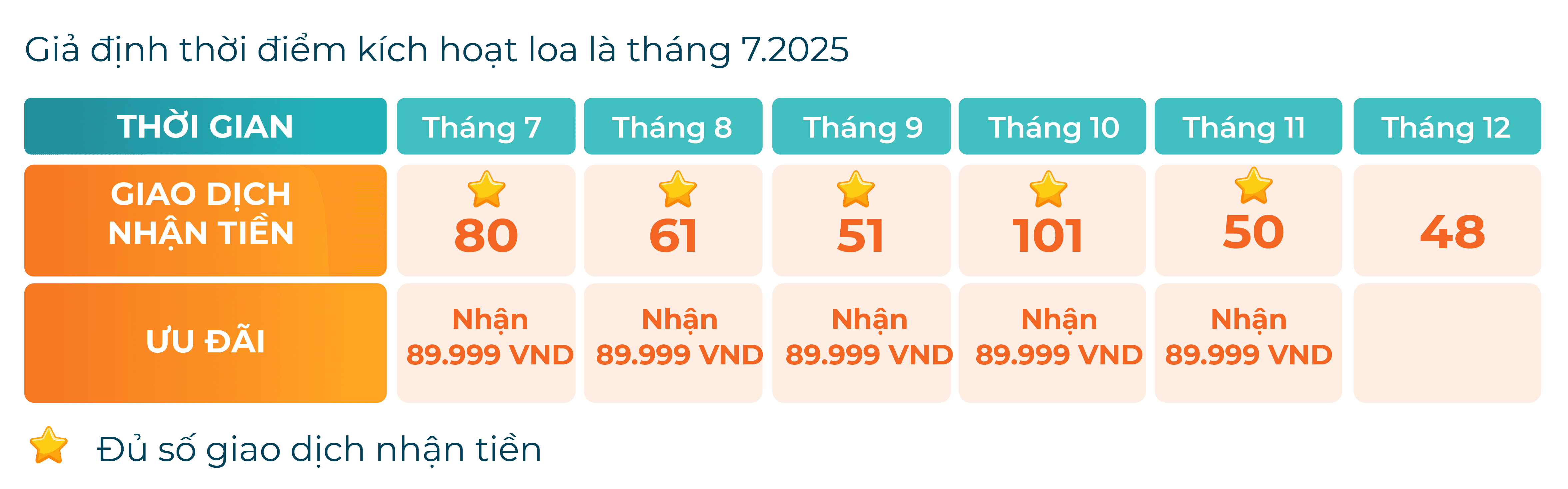 - Chỉ cần tối thiểu 50 giao dịch nhận tiền/tháng qua QR của loa